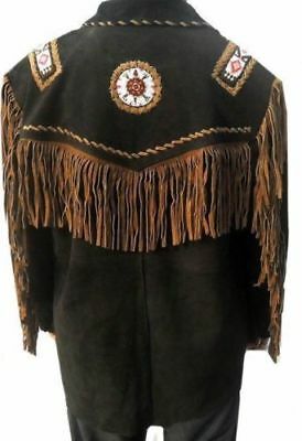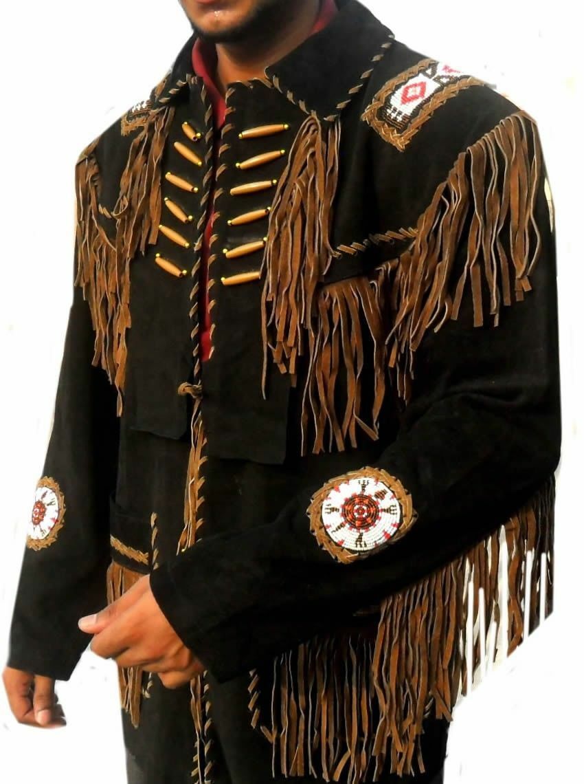Men's Black Suede Leather Vintage Cowboy Coat Fringed and Beaded Jacket