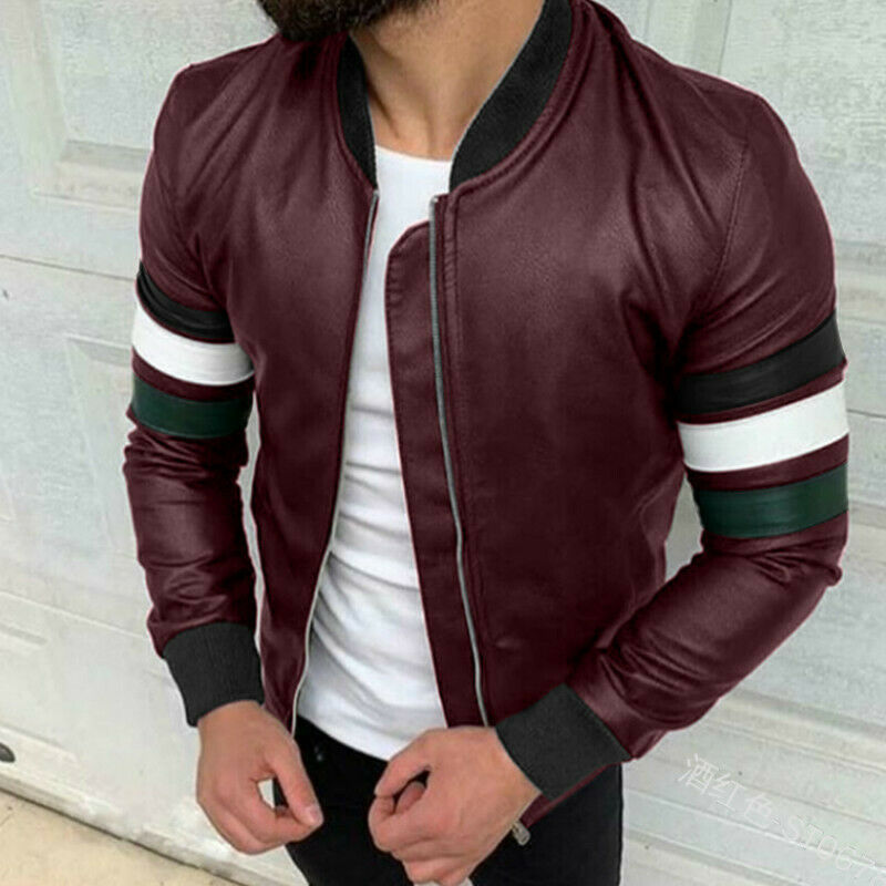 Men's New Handmade Leather Jackets Maroon Leather Bomber Front Zipper Fashion Real Cowhide Leather Biker Jacket
