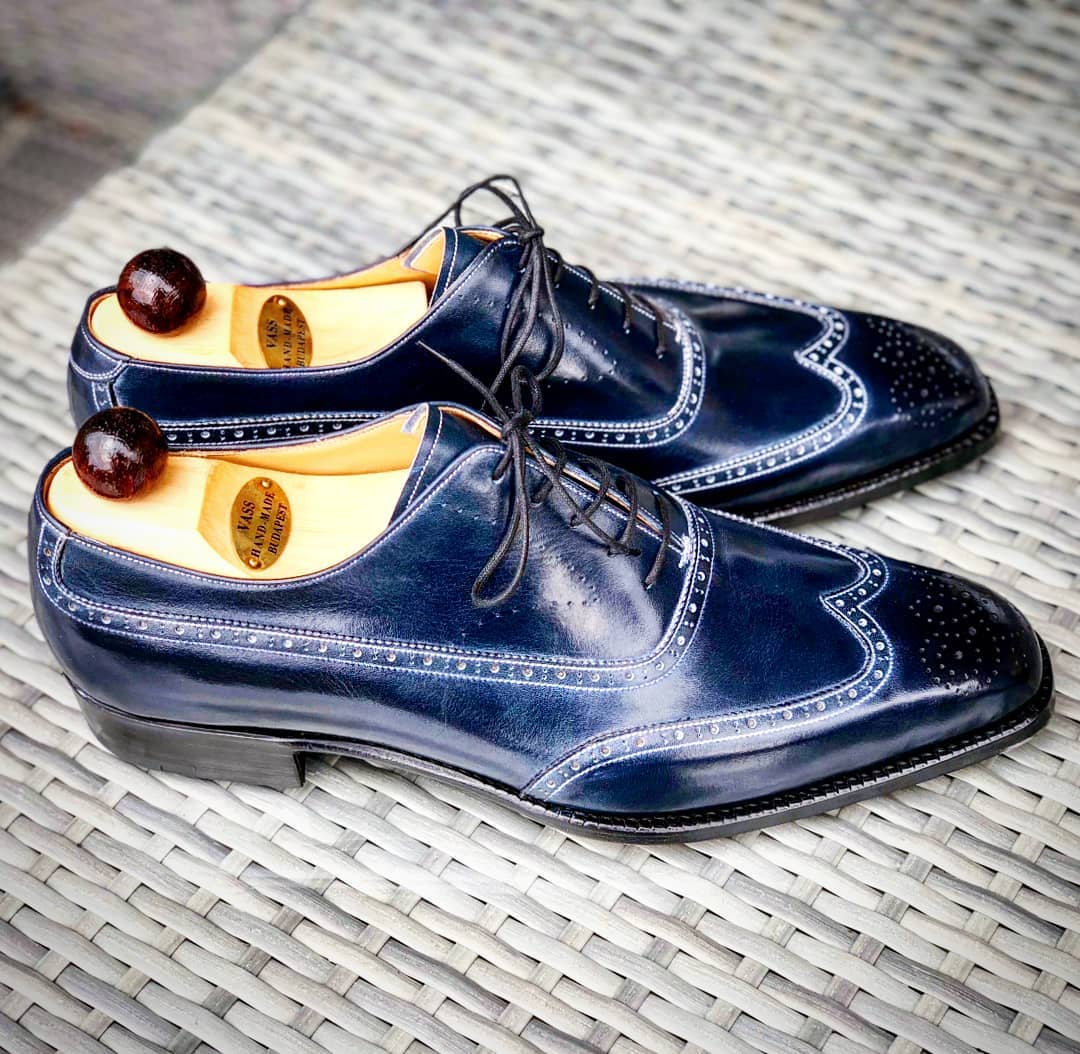 Handmade Blue Wingtip Luxury Dress Oxford Shoes