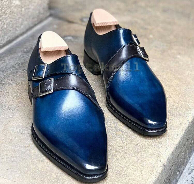 Inner: Soft Sole: Leather( Goodyear Welted ) Gender : Male Heel: Leather Color: Blue Style: Stylish Double Monk Straps Dress Shoes Lining Made With Cow Leather Totally Hand stitched Manufacturing time 7-10 business days If you can’t find your Size/Color just send us message we will make for you.