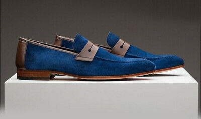 Inner: Soft Sole: Leather( Goodyear Welt ) Gender : Male Heel: Leather Color: Blue Style: Moccasin Loafer Slip On Shoes Toe-Shape: Pointed Toe Lining Made With Cow Leather Totally Hand stitched Manufacturing time 7-10 business days If you can’t find your Size/Color just send us message we will make for you.