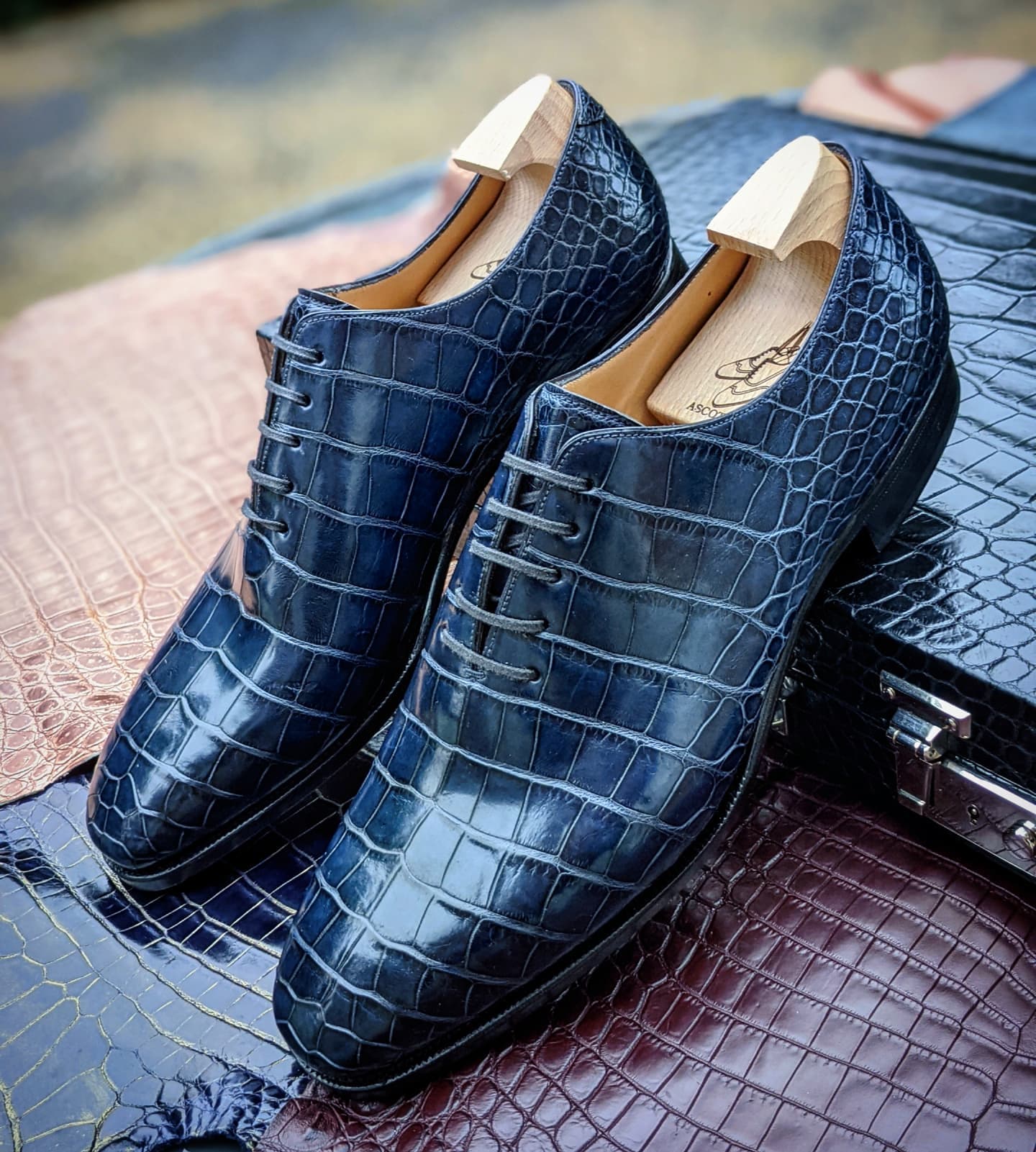 Handmade Blue Genuine Crocodile Texture Leather Dress Shoes