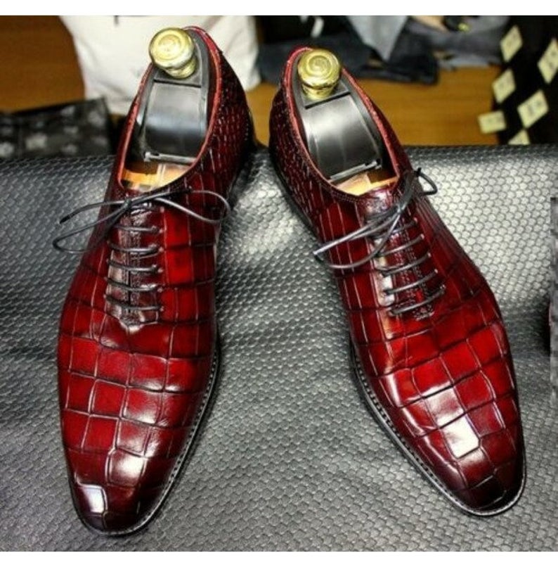New Handmade Men's Oxblood Red Crocodile Texture Leather Dress shoes