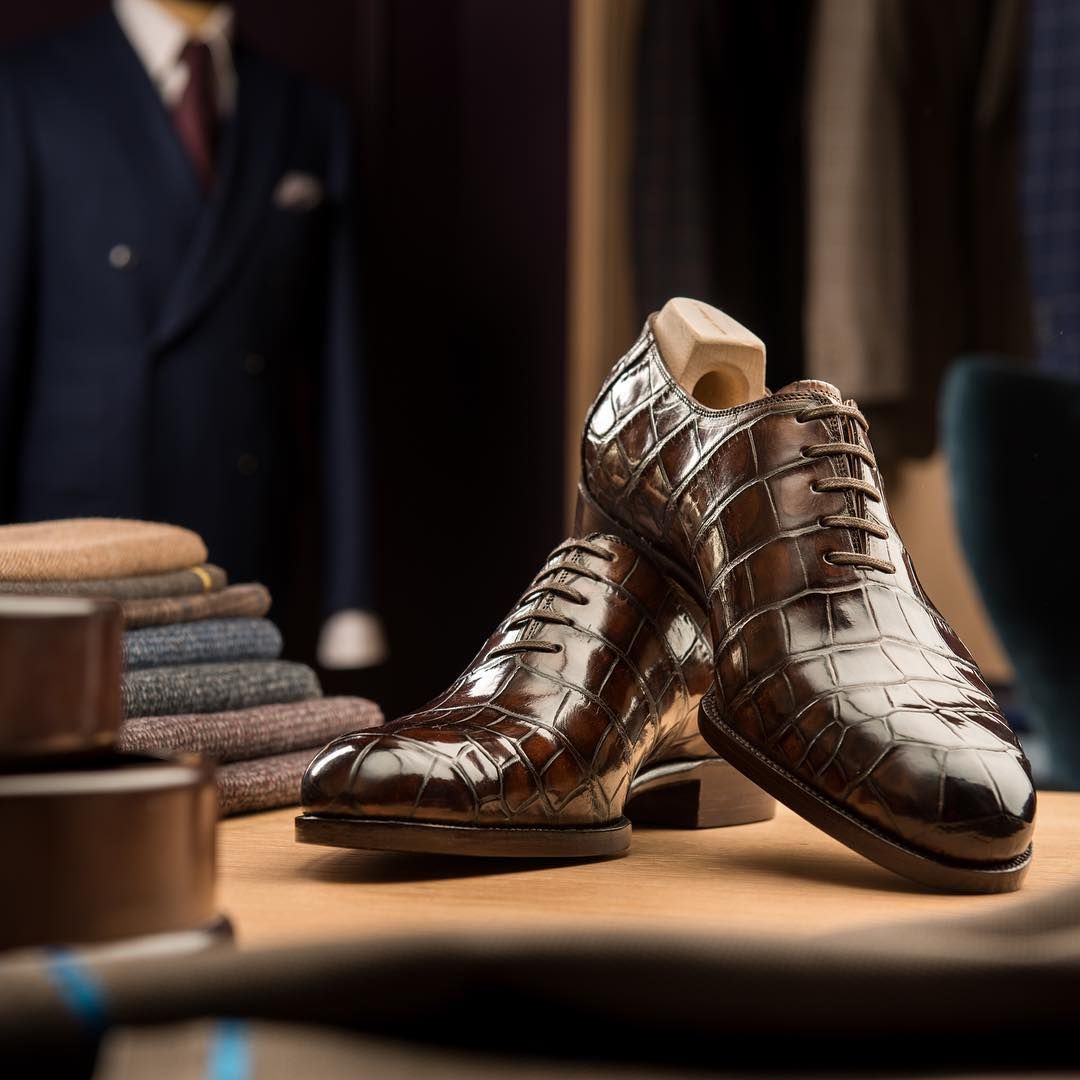 Handmade Brown Crocodile Texture Leather Dress Shoes