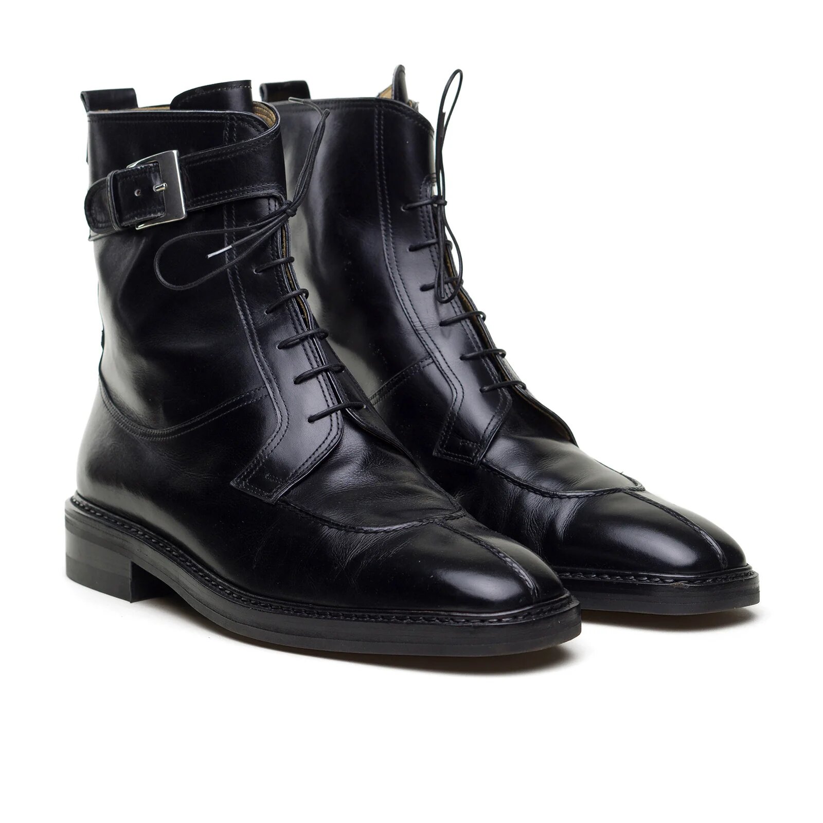 Handmade Black Calf Leather Buckle Ankle High Military Long Boot