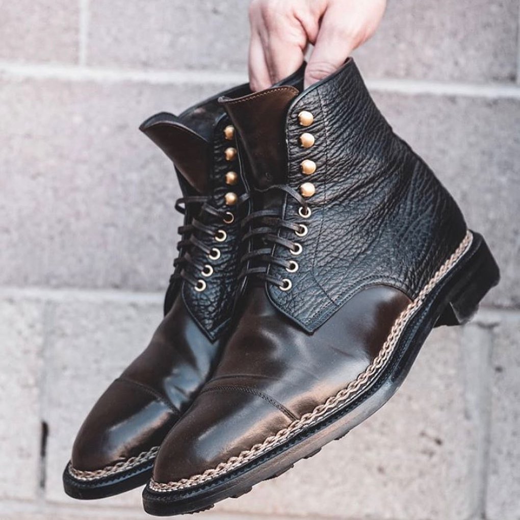 Handmade Men Genuine Leather Ankle High Men Lace up Boot