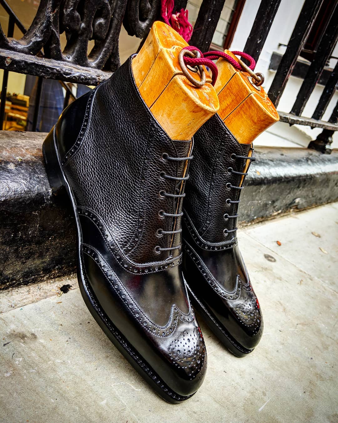 Men Black Calf Leather Ankle High Wingtip Dress Boot