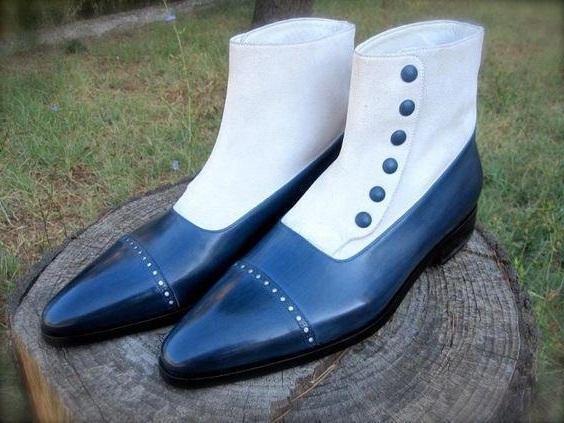 Inner: Soft Sole: Leather Gender : Male Heel: Leather Color: Blue White Style: High Ankle Buttons Boots Lining Soft Calf Leather Lining Totally Hand stitched Manufacturing time 7-10 business days If you can’t find your Size/Color just send us message we will make for you.