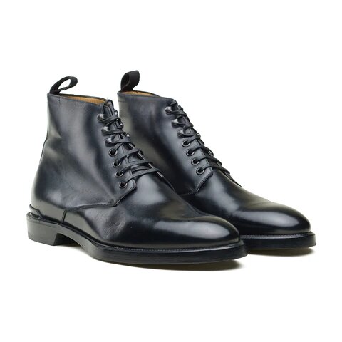 Handmade Black Calf Leather Hand-welted Construction Ankle High Lace up Dress Men Boot