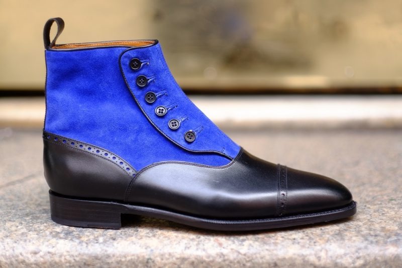 Inner: Soft Sole: Leather Gender : Male Heel: Leather Color: Blue Black Style: Ankle High Button Boot Lining Soft Calf Leather Lining Totally Hand stitched Manufacturing time 7-10 business days If you can’t find your Size/Color just send us message we will make for you.
