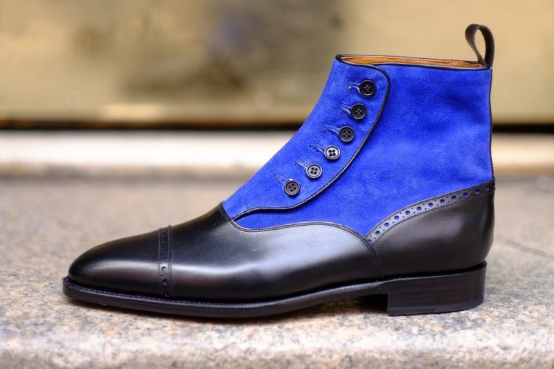 Handmade Black Leather & Blue Suede Button Dress Boots, Men Ankle High Fashion Boot