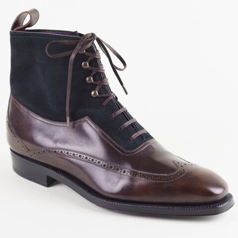 Men Brown Leather and Blue Suede Ankle Dress Boot