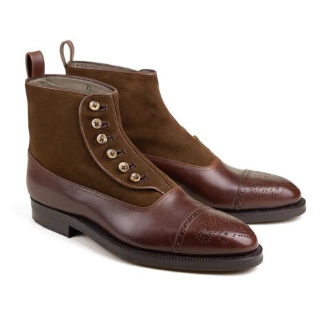 Handmade Mens Two Tone Brown Suede Leather Button Ankle High Dress Boots
