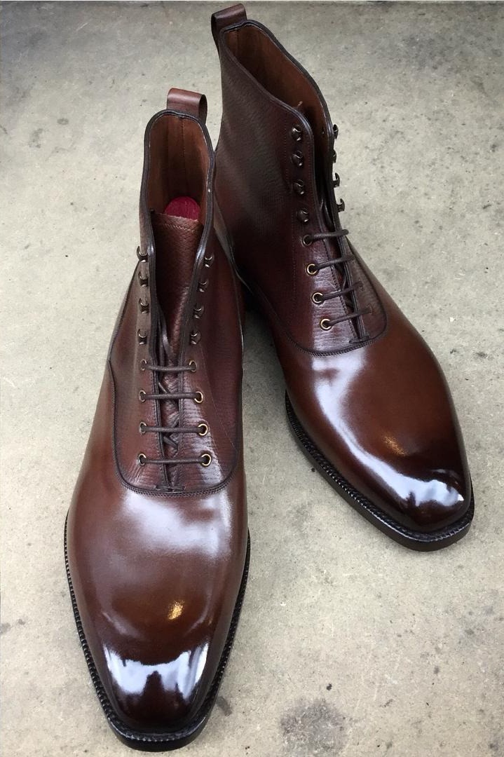 Made to Order Dark Brown Leather Ankle High Lace up Boot