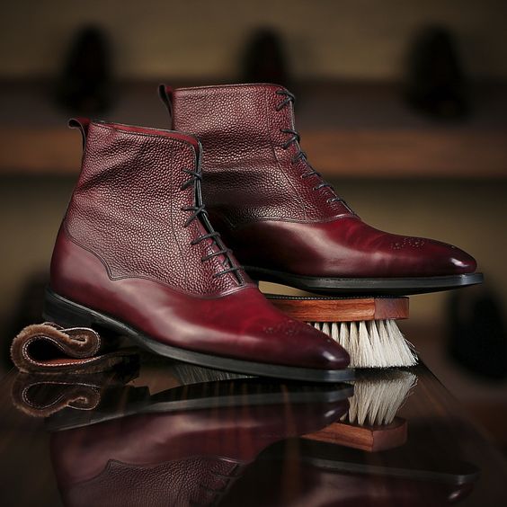 Handmade Burgundy Leather Dress Ankle High Lace up Men Boot