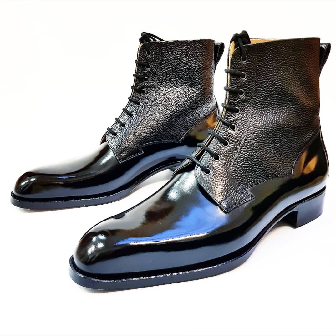 Inner: Soft Sole: Leather( Goodyear Welted ) Gender : Male Heel: Leather Color: Black Style: Ankle High Boots Totally Hand stitched Manufacturing time 7-10 business days If you can’t find your Size/Color just send us message we will make for you.