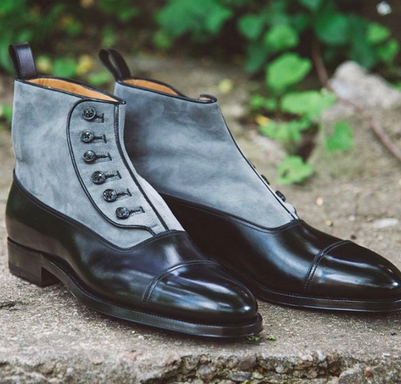 Inner: Soft Sole: Leather Gender : Male Heel: Leather Color: Black / Grey Style: Ankle High Button Boot Lining Soft Calf Leather Lining Totally Hand stitched Manufacturing time 7-10 business days If you can’t find your Size/Color just send us message we will make for you.