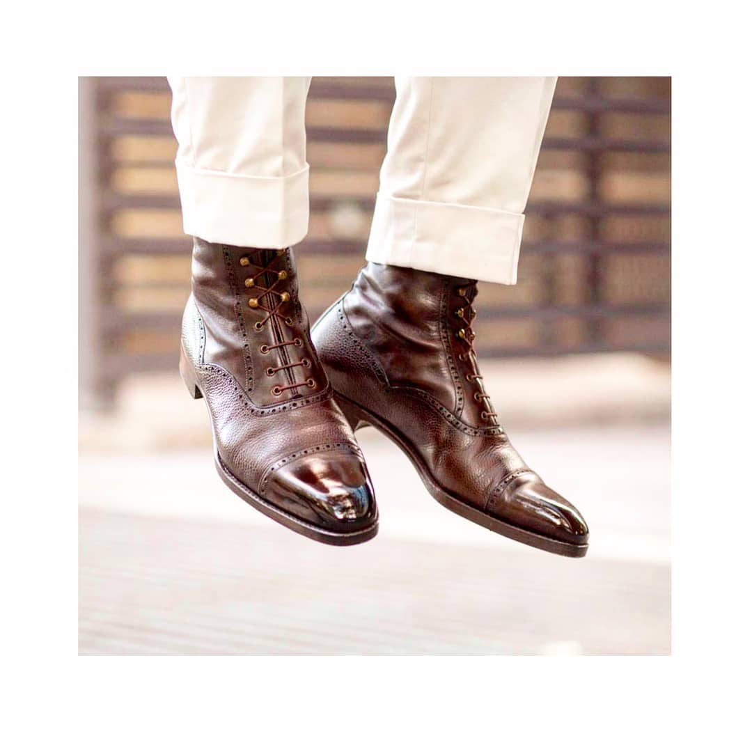Ankle High Brown French Calf and Scotchgrain Lace up Dress Boot