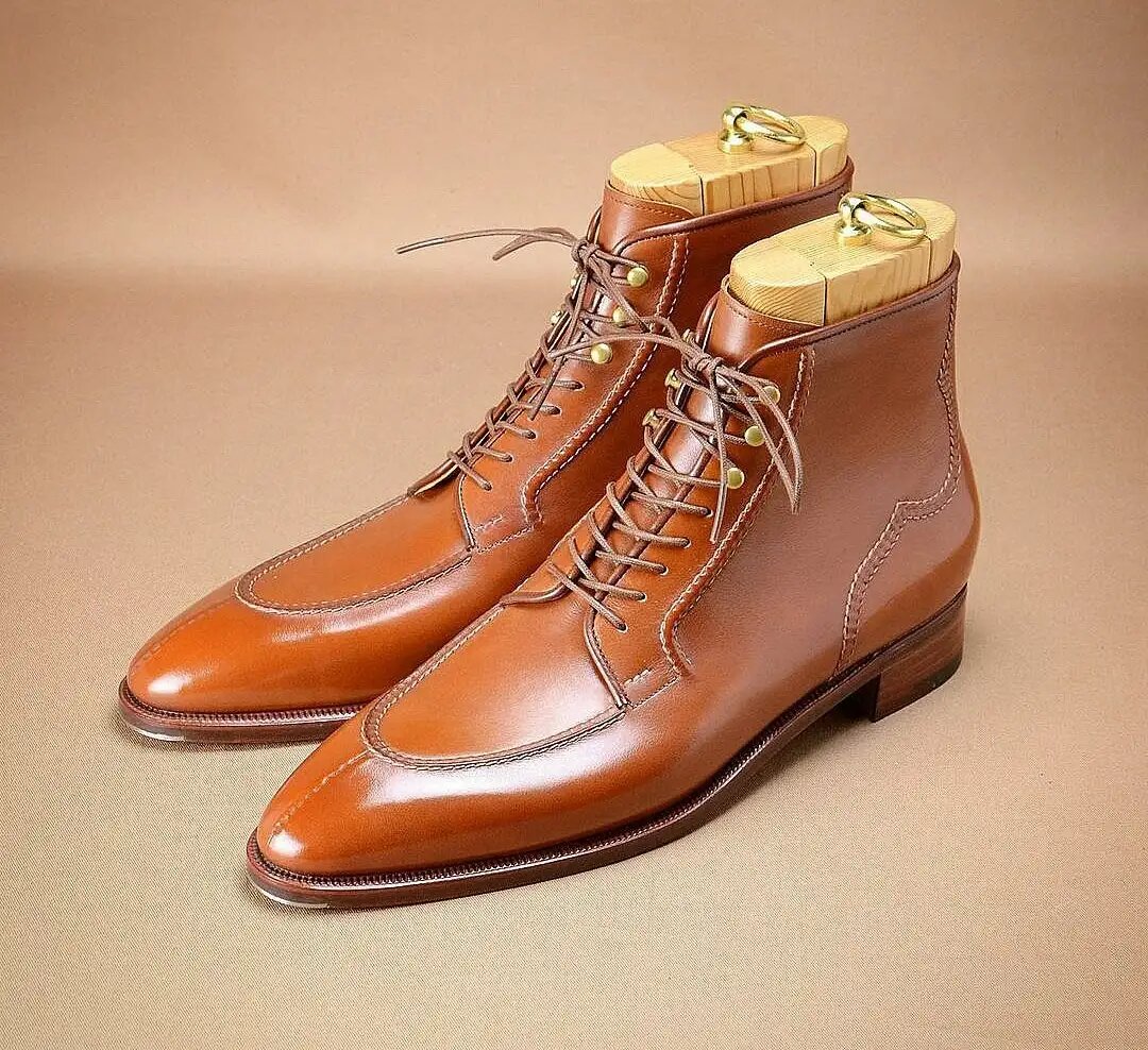 Inner: Soft Sole: Leather Gender : Male Heel: Leather Color: Brown Style: Ankle High Boot Lining Soft Calf Leather Lining Totally Hand stitched Manufacturing time 7-10 business days If you can’t find your Size/Color just send us message we will make for you.