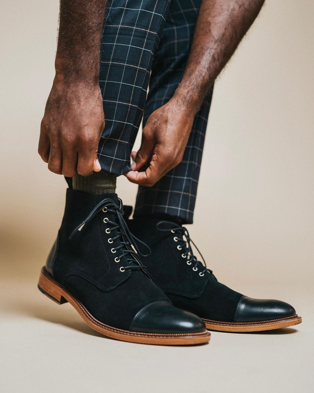 Handmade Black Suede Leather Ankle Lace up Dress Boot