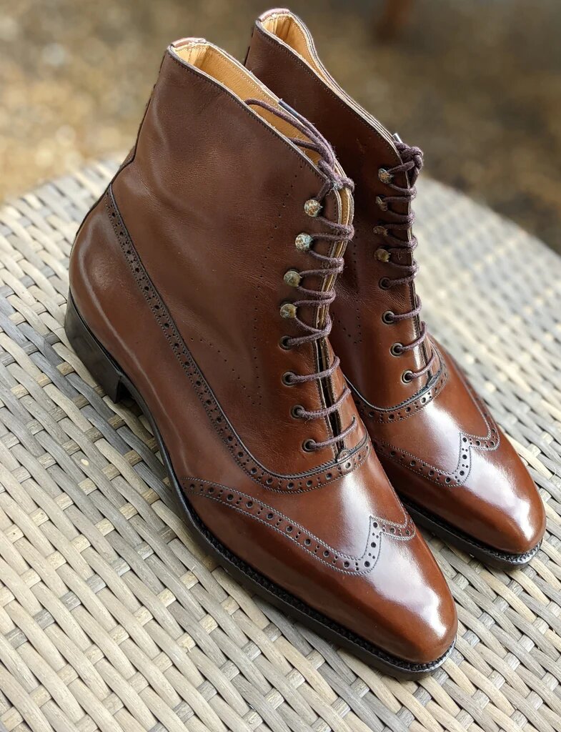 Inner: Soft Sole: Leather Gender : Male Heel: Leather Color: Antique Cognac Style: Ankle High Dress Boot Totally Hand stitched Manufacturing time 7-10 business days If you can’t find your Size/Color just send us message we will make for you.
