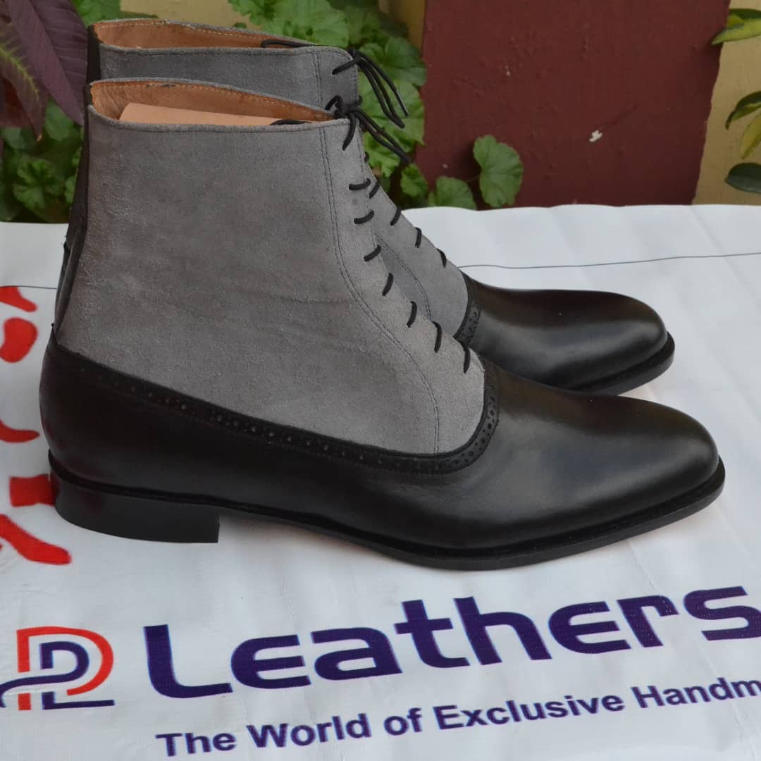 Black Calf and Gray Suede Men Ankle High Dress Lace up Boot
