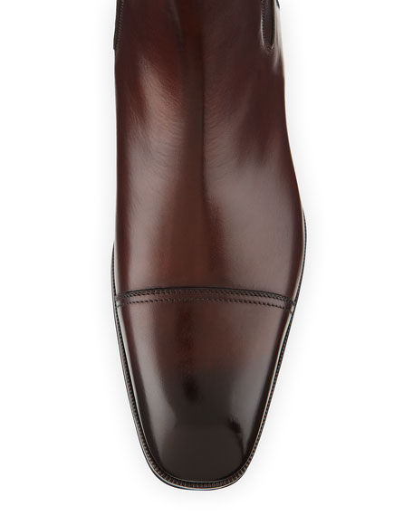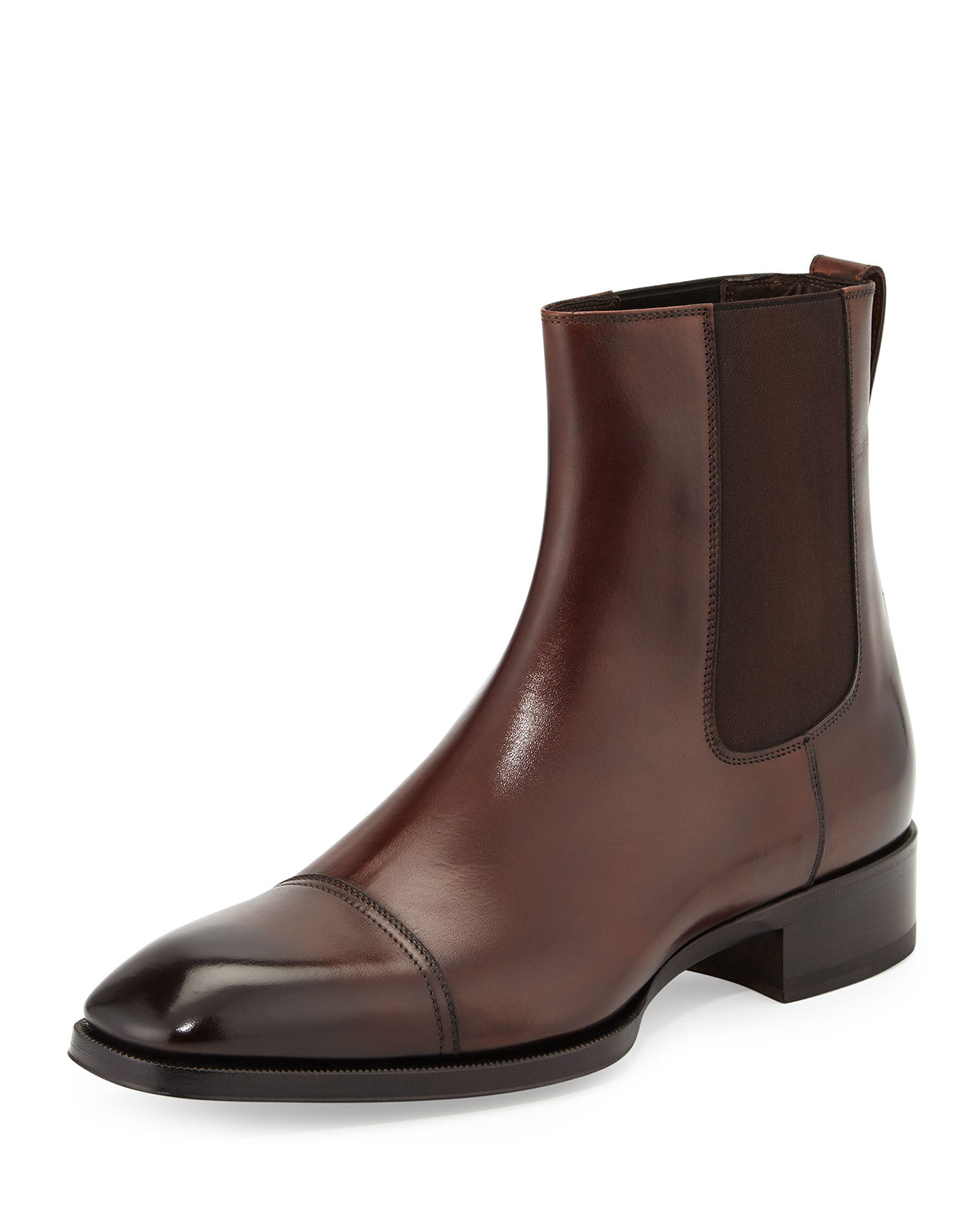 Handmade Men's brown Chelsea leather boot, Handcrafted brown formal ankle boot
