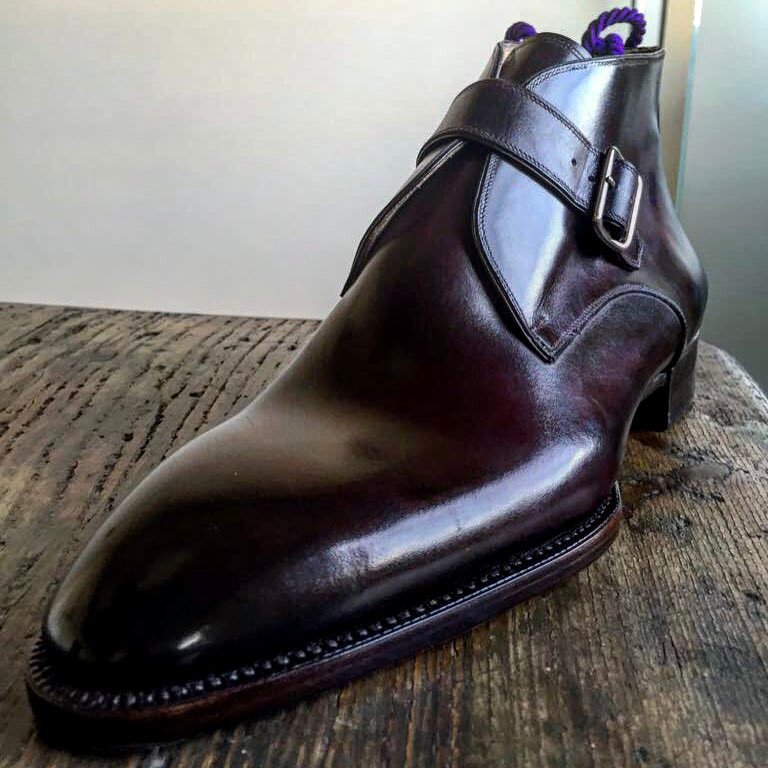 Men Burgundy Dark Leather Monk Strap Chukka Boot Handmade