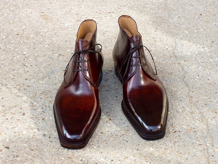 Inner: Soft Sole: Leather Gender : Male Heel: Leather Color: Burgundy Style: Chukka Boot Lining Soft Calf Leather Lining Totally Hand stitched Manufacturing time 7-10 business days If you can’t find your Size/Color just send us message we will make for you.