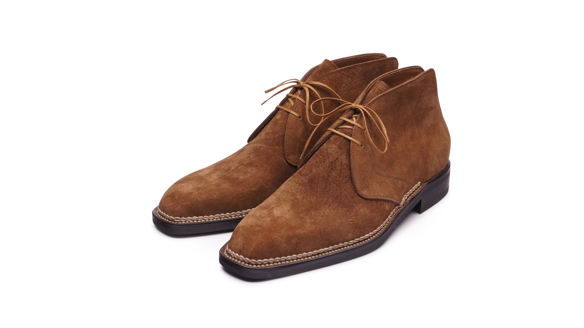 Handmade Tan Suede Leather Stitched with Norwegian Braided Stitching Chukka Boots