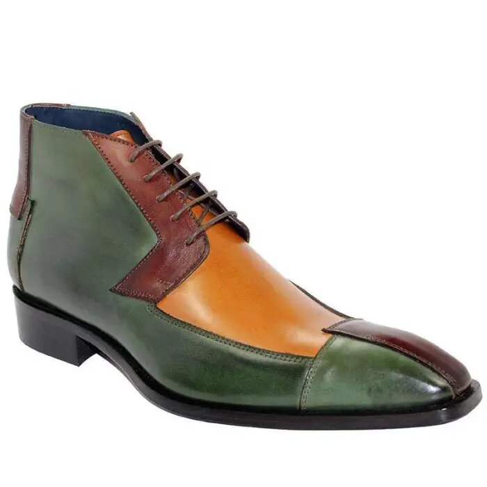 Men Italian Calf-Skin Leather Green Tri-Tone Chukka Boots