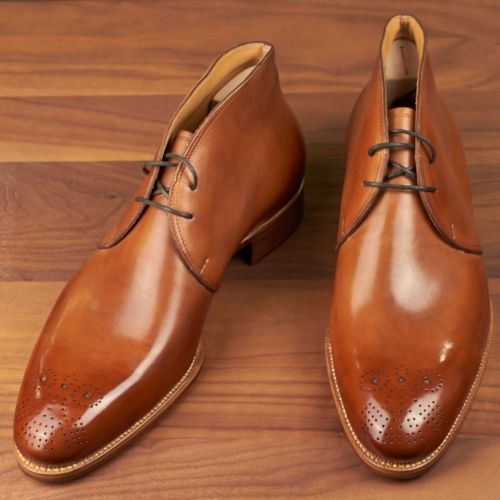 Brown Shine Leather Chukka Boot, Handmade Men Lace up Dress Boot