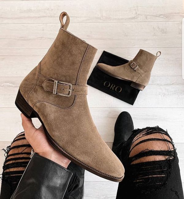 New Handmade Suede Leather Brown Jodhpur Boots For Men