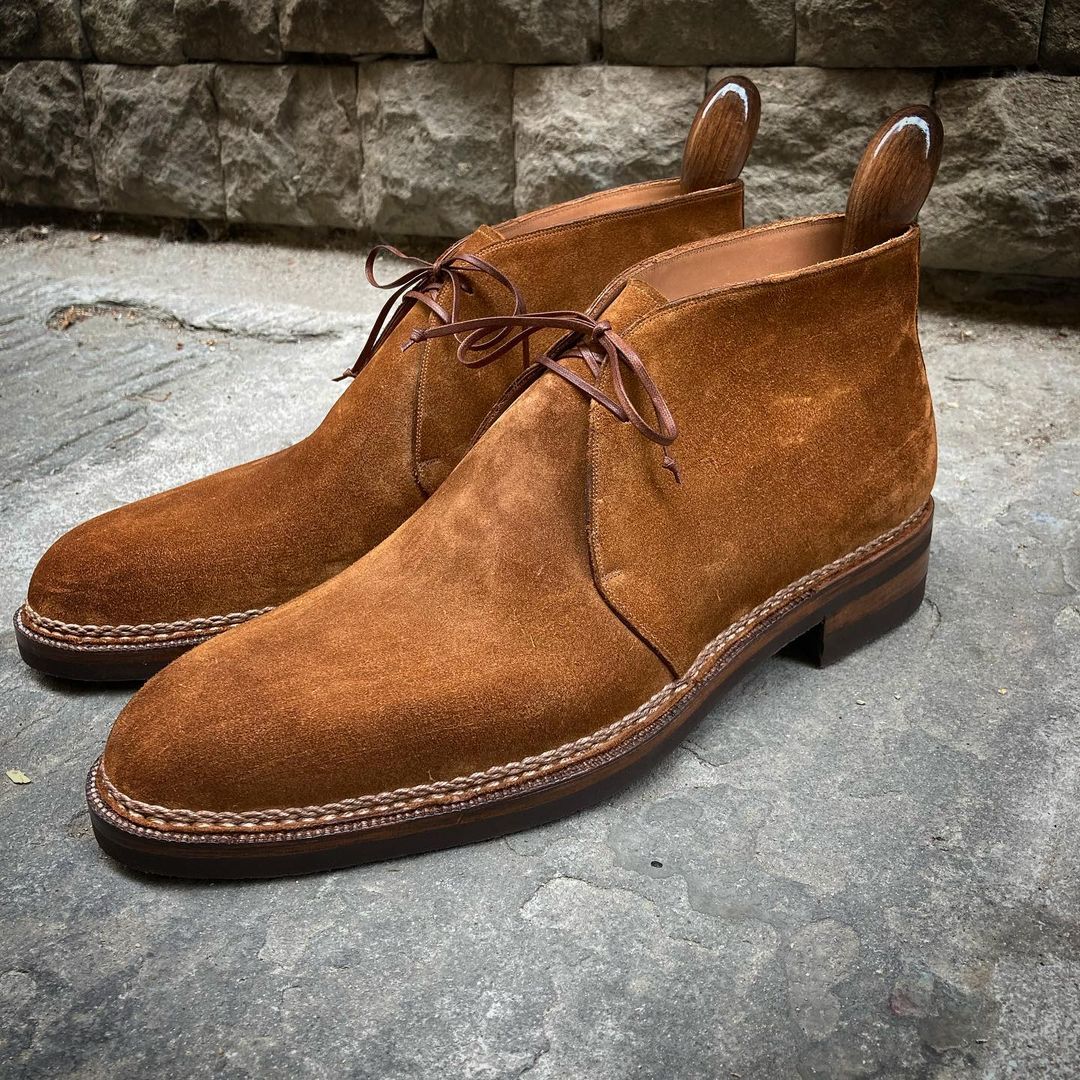 Chukka Boots in Light Brown Suede Leather Norwegian Construction