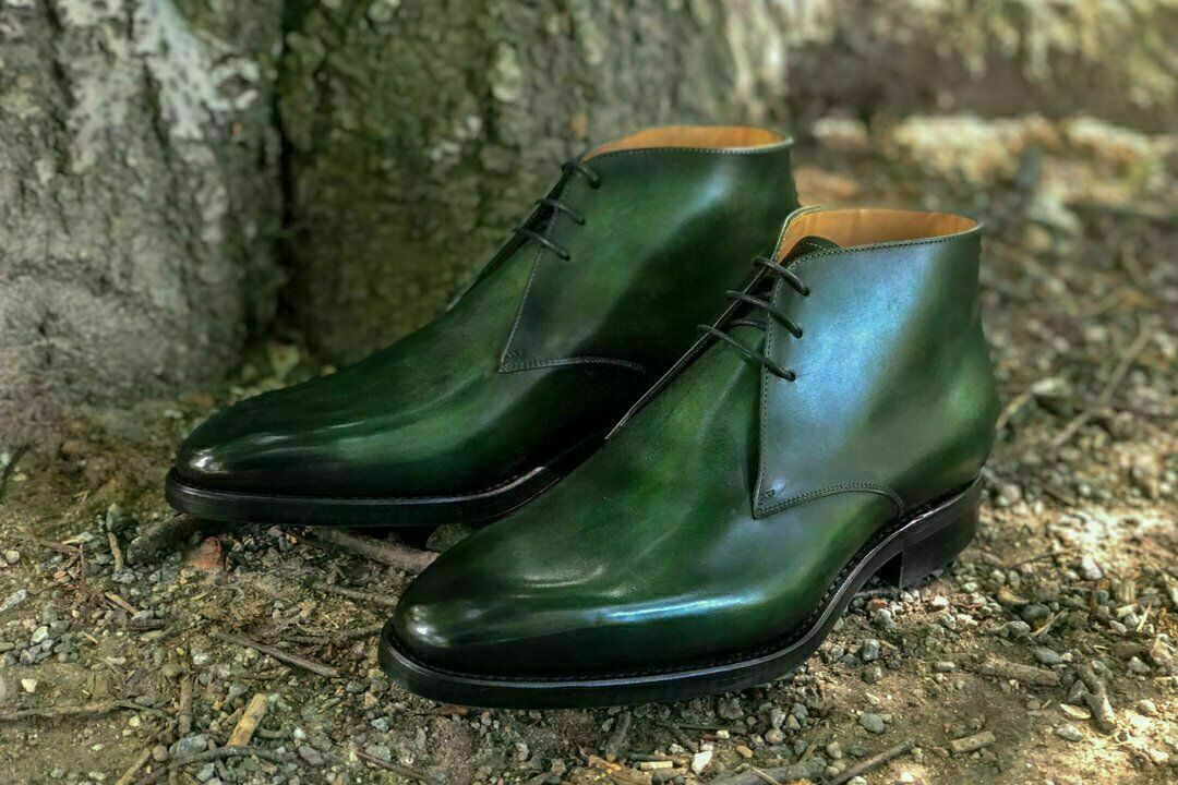 New Handmade Men's Green Genuine Leather Chukka Dress Boot