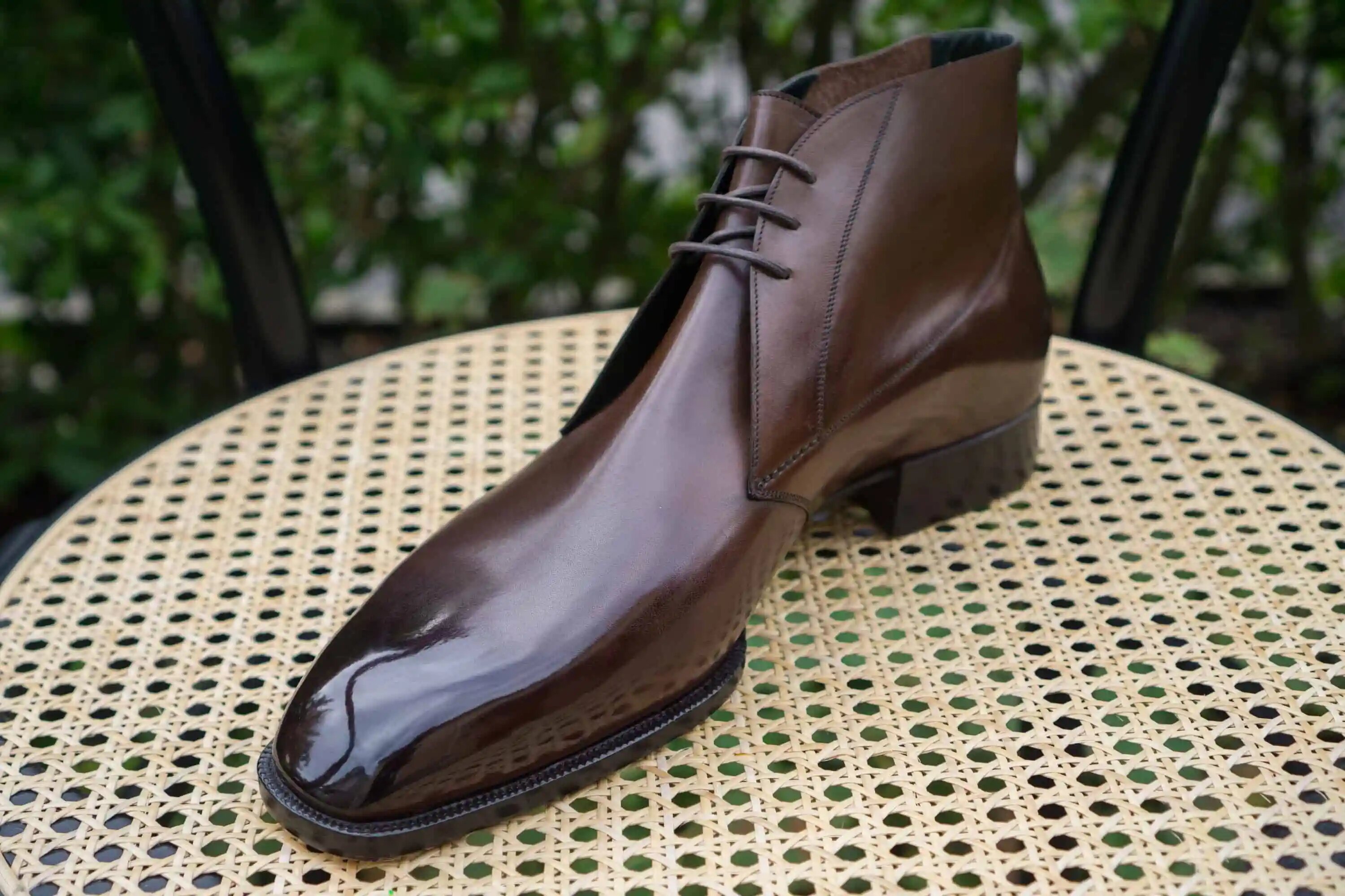 Inner: Soft Sole: Leather Gender : Male Heel: Leather Color: Dark Brown Style: Chukka Boot Lining Soft Calf Leather Lining Totally Hand stitched Manufacturing time 7-10 business days If you can’t find your Size/Color just send us message we will make for you.