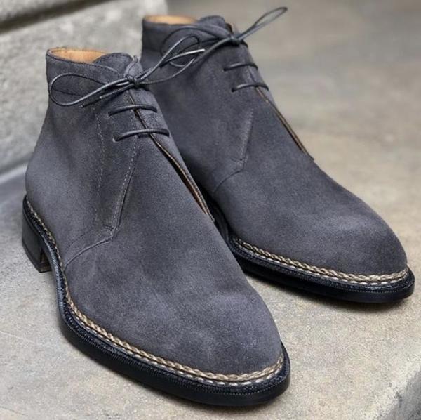 Handmade Men's Grey Chukka Suede Leather Lace up Boot