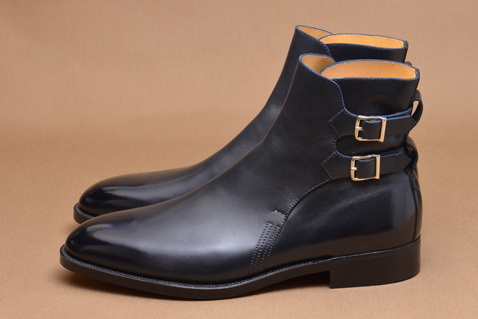 Handmade Black Double Buckle Strap Jodhpur Ankle High Boot