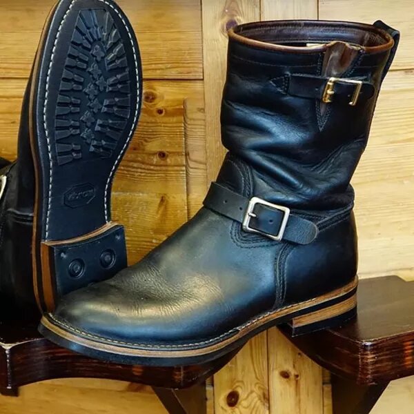 Inner: Soft Sole: Leather Gender : Male Heel: Leather Color: Black Style: Diagonal Buckle Cowboy Boots Totally Hand stitched Manufacturing time 7-10 business days If you can’t find your Size/Color just send us message we will make for you.