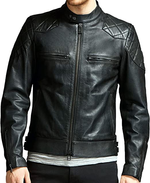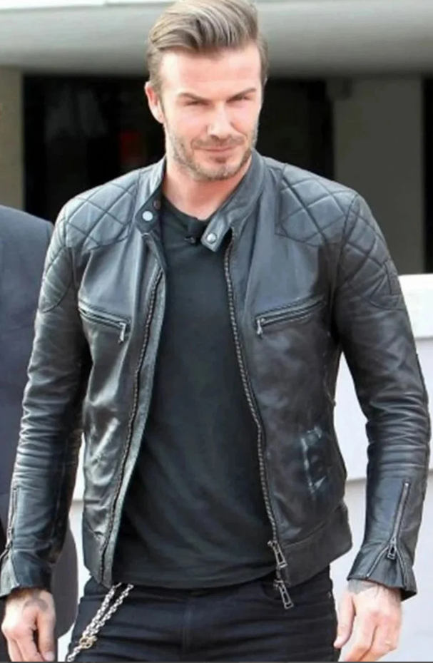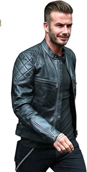 Mens David Beckham Black Real Leather Jacket Vintage Slim Genuine Leather