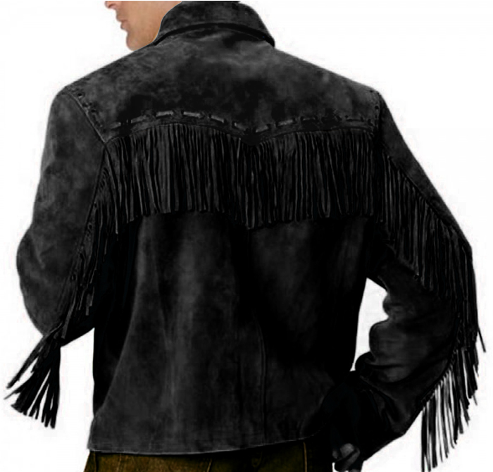 HANDMADE CLASSIC WESTERN BLACK FRINGES DESIGNER MEN'S LEATHER JACKET