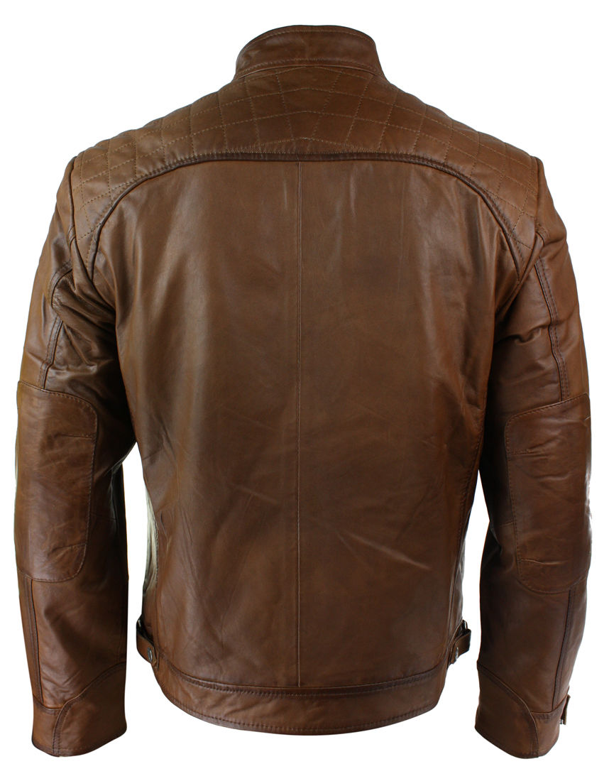 MEN'S GENUINE SLIM FIT SOFT TAN BROWN LEATHER JACKET