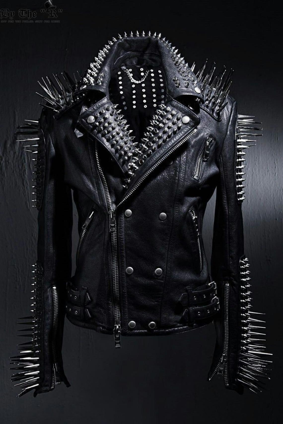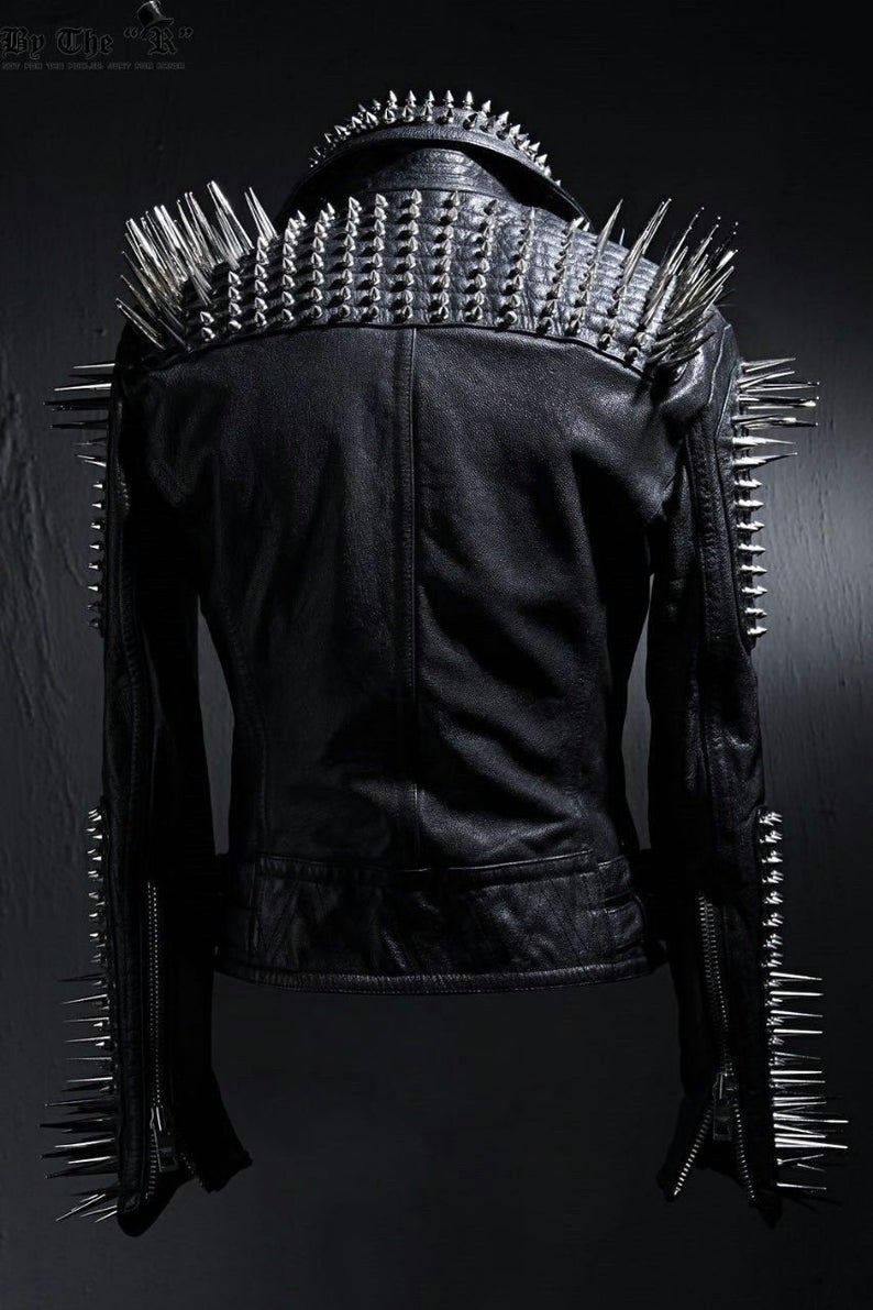 NEW HANDMADE MENS LONG SPIKED SILVER STUDDED LEATHER JACKET