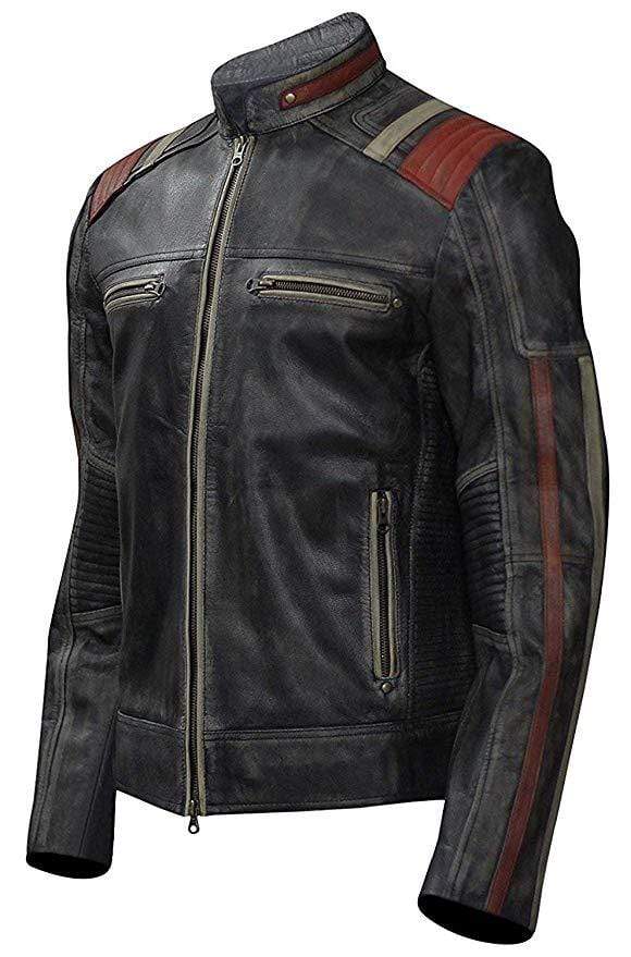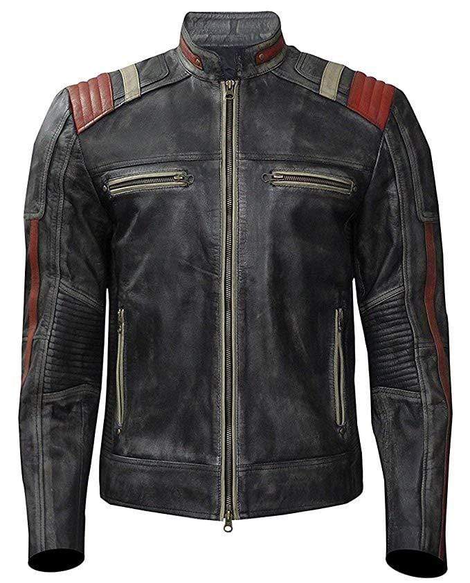 MENS RETRO CAFE RACER VINTAGE DISTRESSED MOTORCYCLE BLACK LEATHER BIKER JACKET