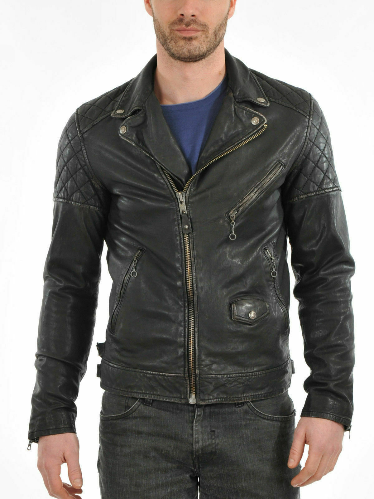MEN'S GENUINE LAMBSKIN REAL LEATHER JACKET BLACK SLIM FIT BIKER MOTORCYCLE JACKET