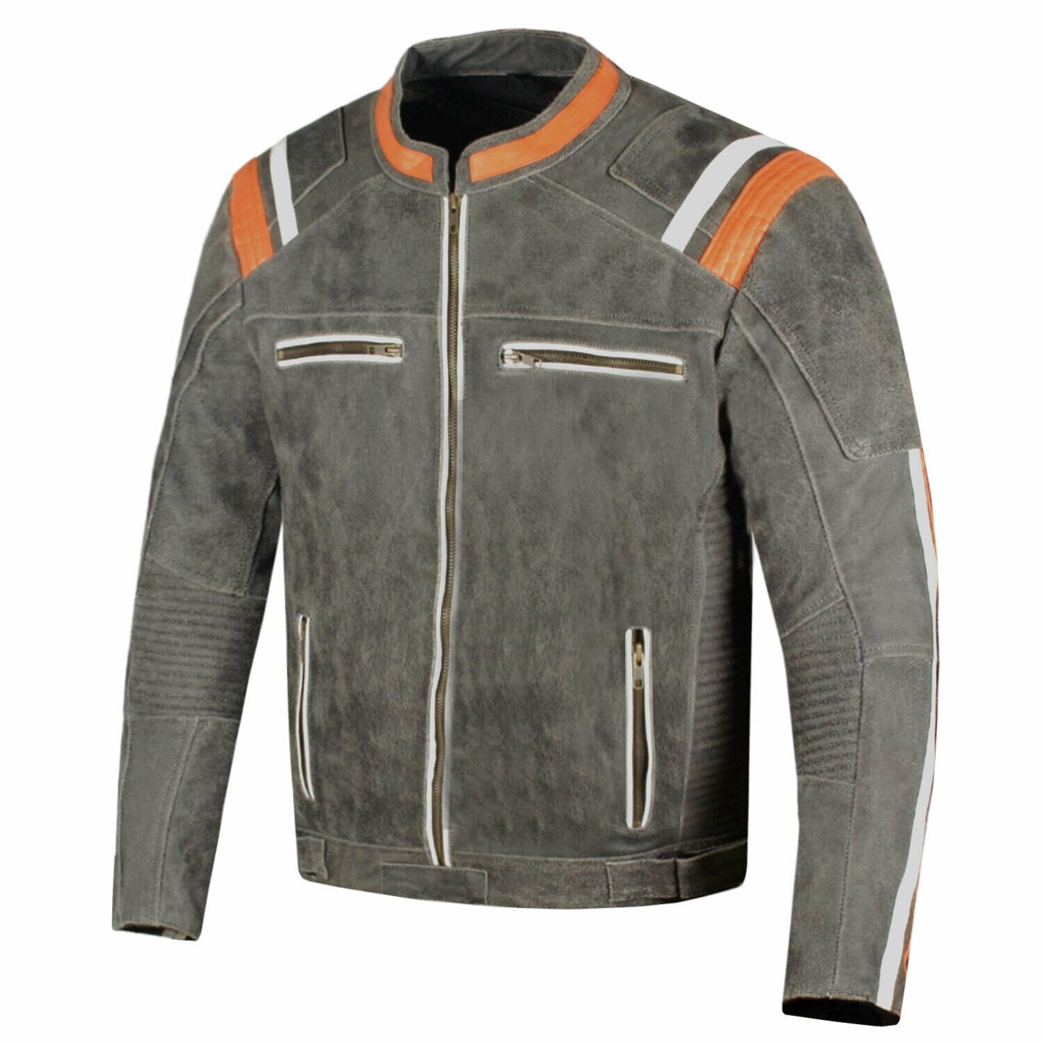 Men's Custom Made Classic Cruiser Street Motorcycle Distress Leather CE Armor Biker Jacket