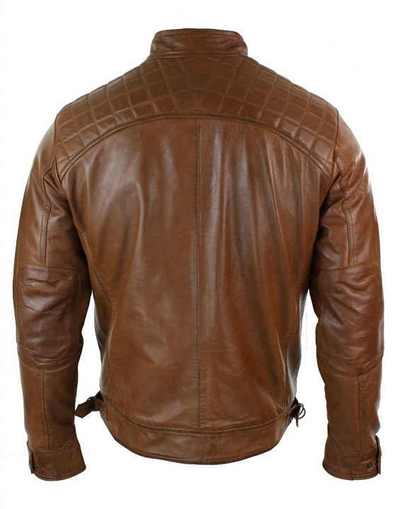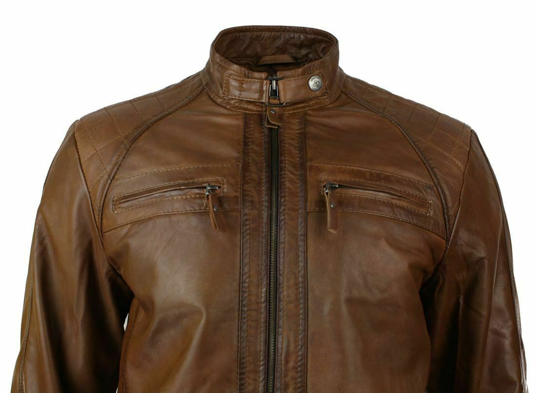 Men's Fashion Cowhide Leather Brown Waxed Biker Style Fashion Leather Jackets