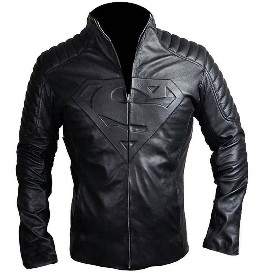 New Men's Handmade Black Leather Superman Logo Fashion Leather Biker Jackets