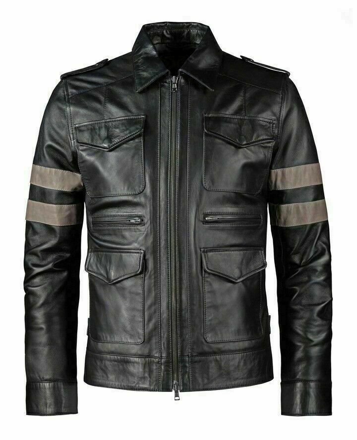 New Men's Handmade Fashion Leather Jackets Black Leather Bomber Front Zipper Real Cowhide Leather Biker Jackets