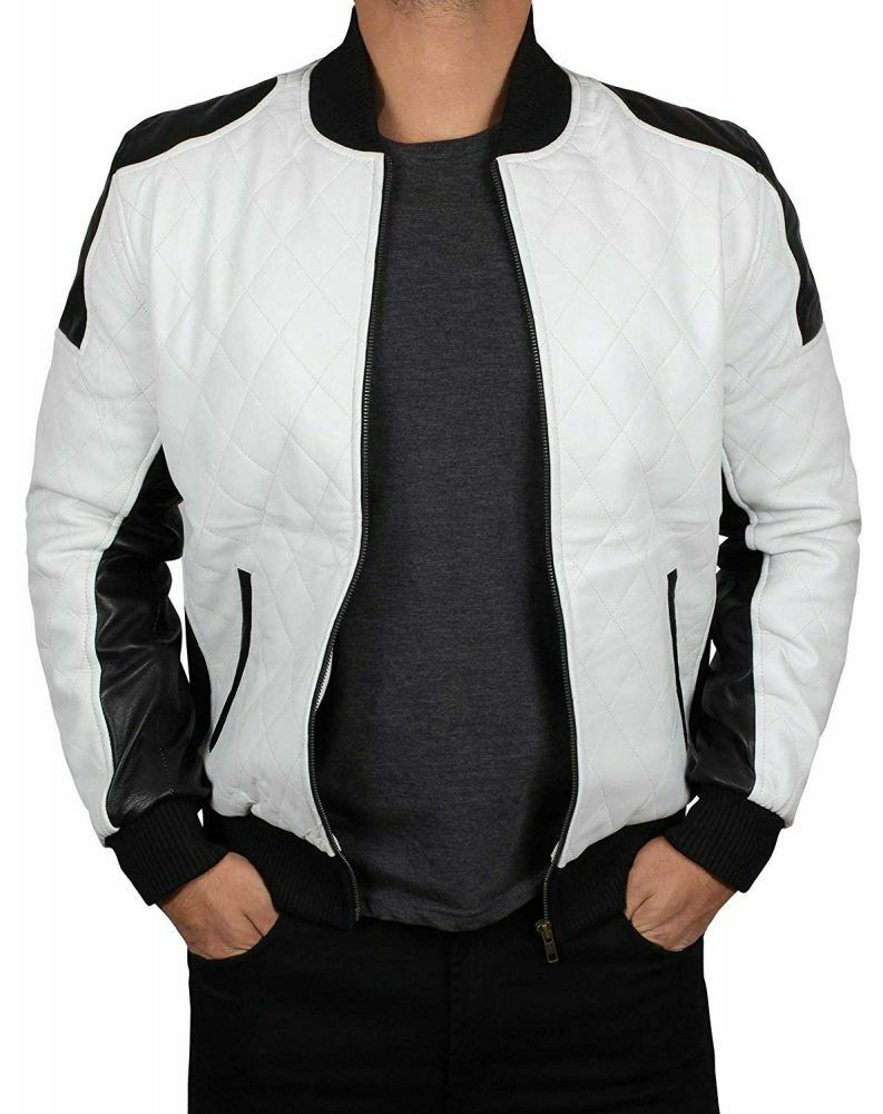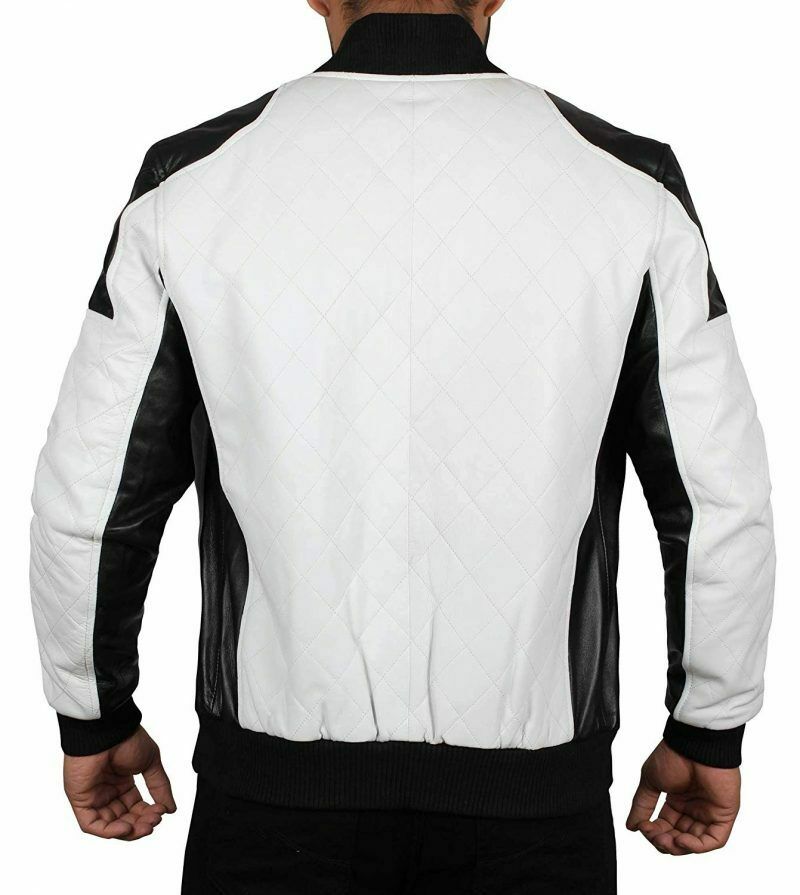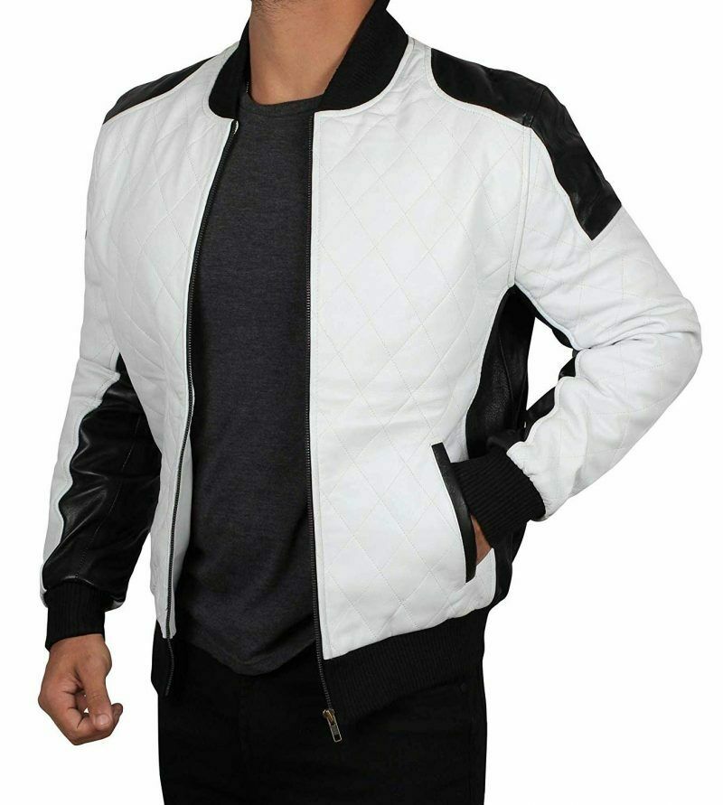 Men's New Custom made White & Black Leather Zipper Style Biker Leather Jacke
